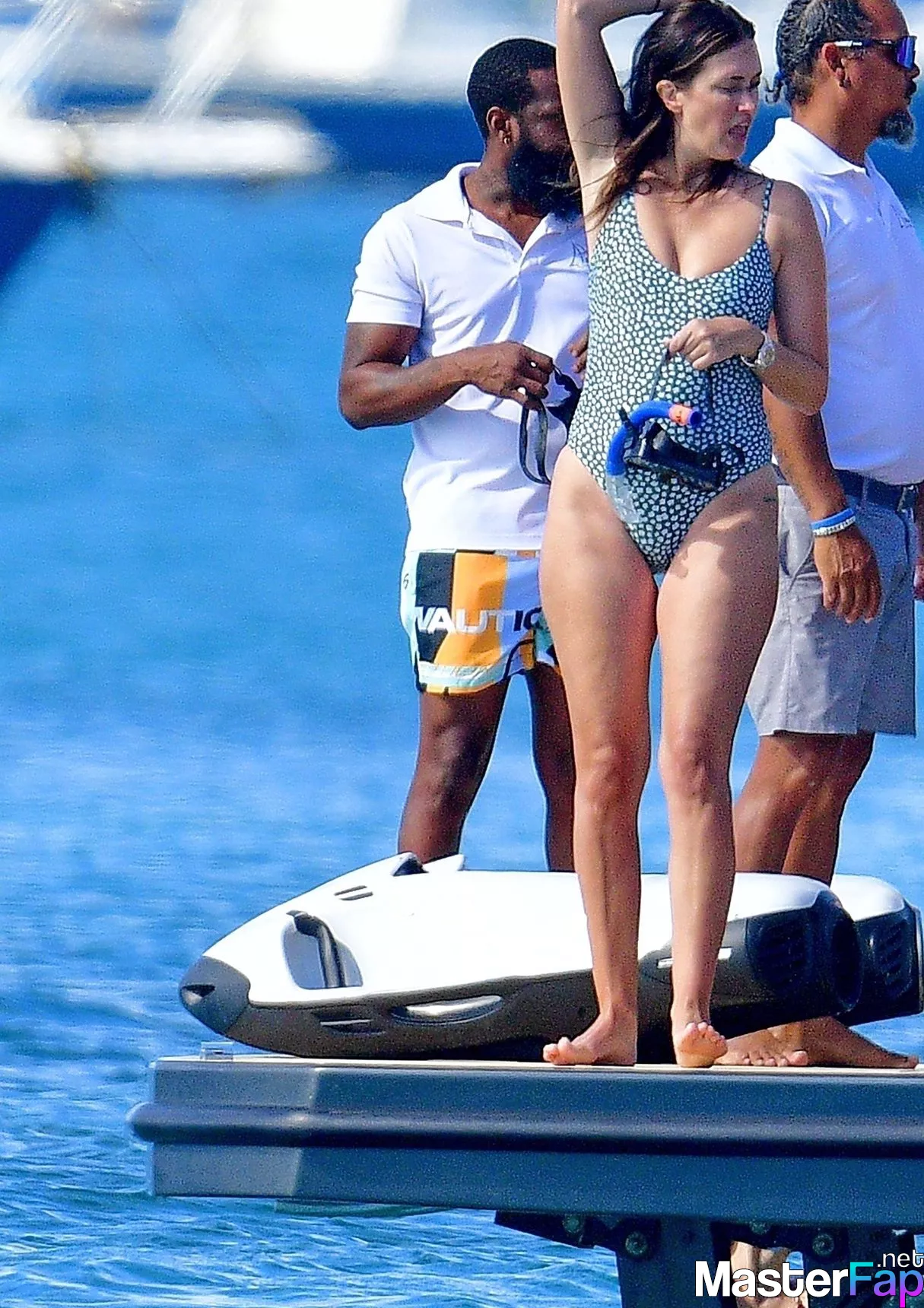 While on vacation in Barbados on December 31st, 2022, hunky star Mark Wahlberg flaunts his ripped figure while celebrating New Year's Eve on a luxurious ship with his family and wife, Rhea Durham. The party was spotted taking advantage of the warm weather in the Caribbean by going for a swim, and Mark displayed his diving talents by leaping from the boat into the water to demonstrate his abilities. It seems like the Hollywood actor had been having too much fun since he was spotted dozing off before his wife Rhea joined him and the two of them snuggled up together.