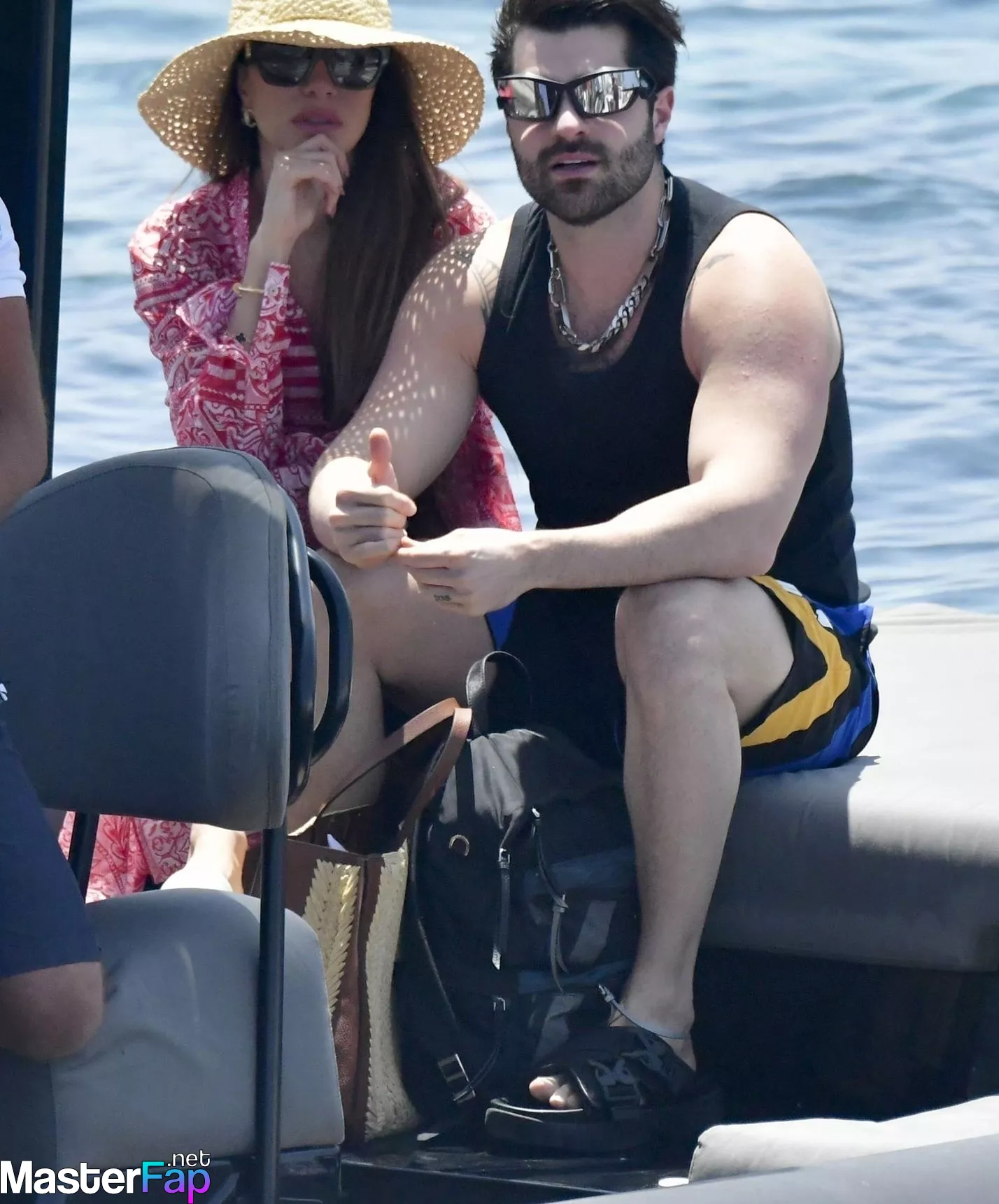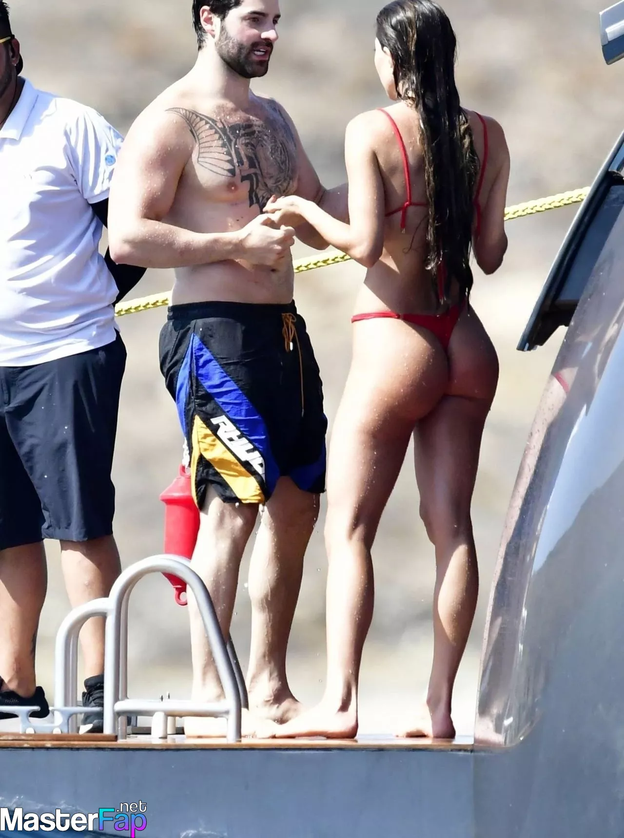 Alok Achkar Peres Petrillo, a Brazilian singer, DJ, and record producer, removes his shirt while having a little fun in the sun on his boat while vacationing on the Greek island of Mykonos with his wife Romana Novais and a few scantily-clad pals on July 25, 2023.