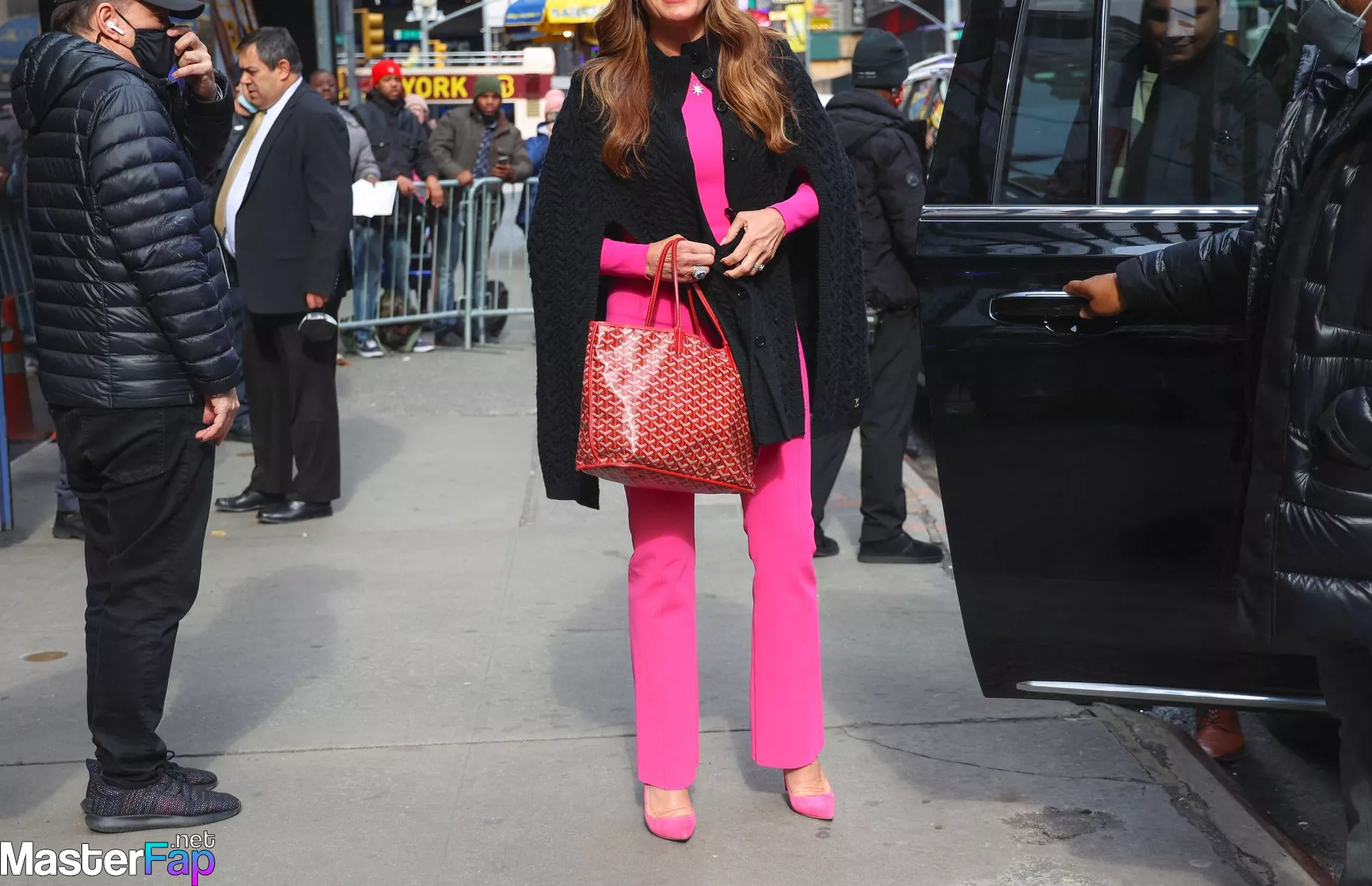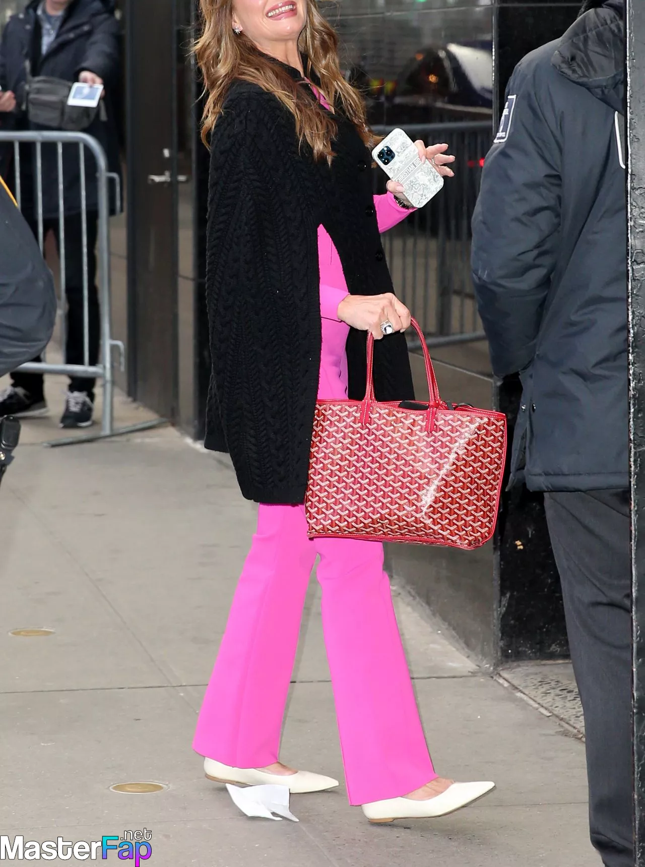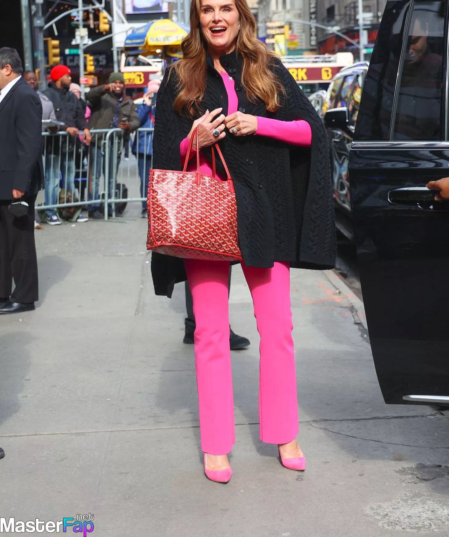 Outside of Good Morning America in New York City on March 31st, 2023, Brooke Shields may be seen wearing a pink top and jeans.
