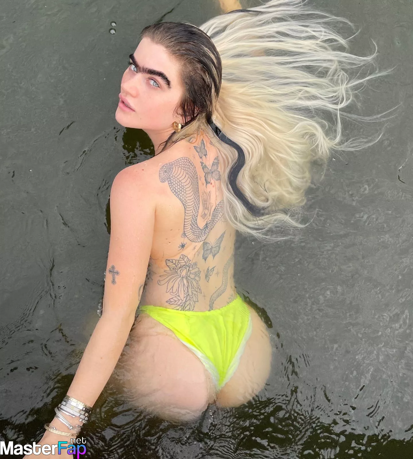 Model Sophia Hadjipanteli is once again breaking the internet with her raw pics. This time, the brow-browed babe dove straight into the water, ditching all the extras and rocking just neon panties. But even that couldn’t stop her sexy curves from causing a fan frenzy.