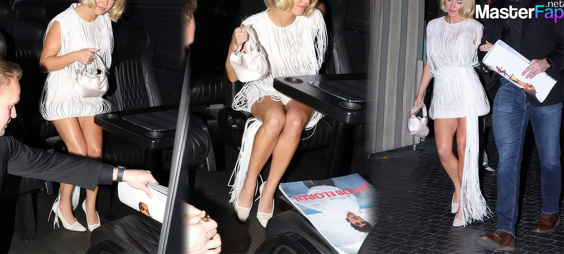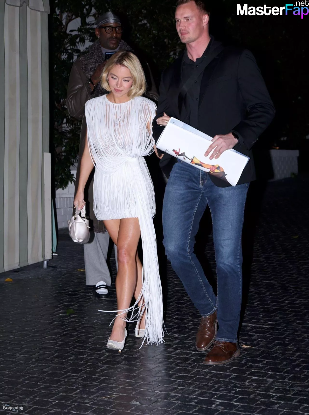 Sydney Sweeney stuns in a see-through white dress and shows her sexy legs at the W Magazine party.