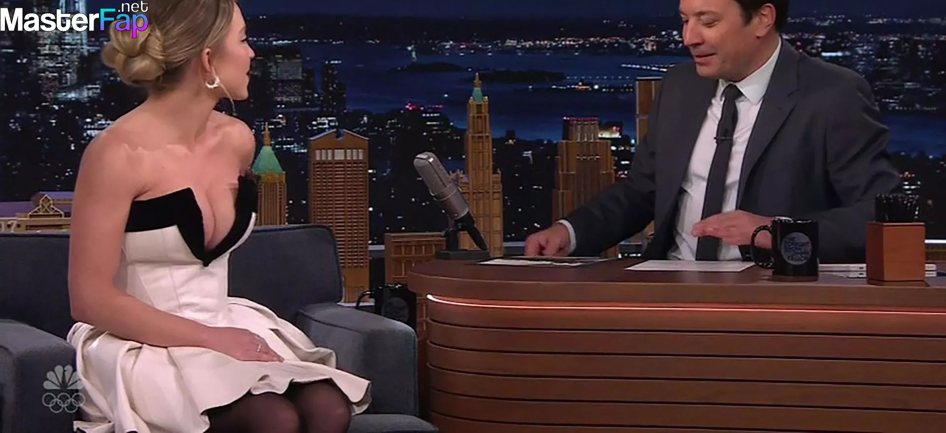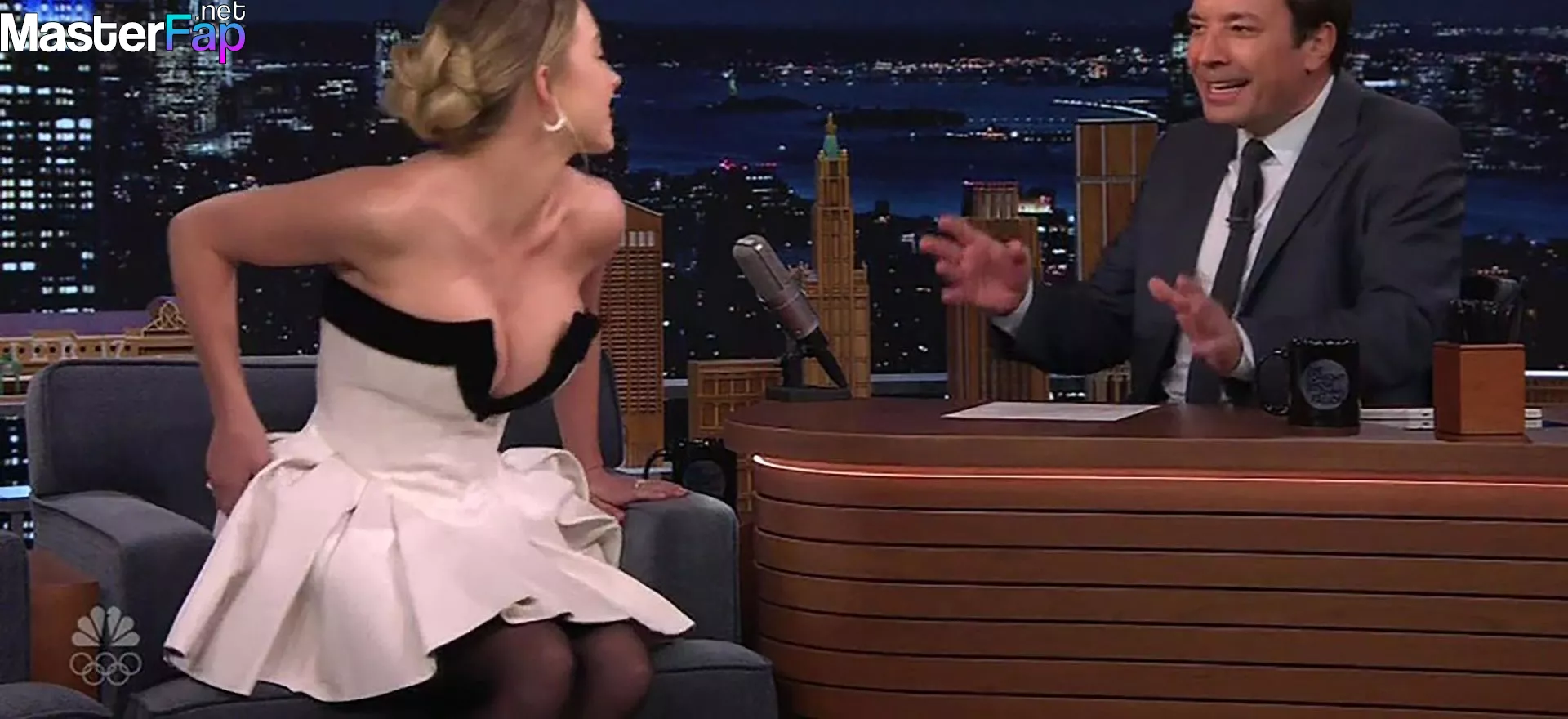 “Euphoria” and The Fappening star Sydney Sweeney narrowly avoids a wardrobe malfunction in low cut dress as she appears on The Tonight Show. The actress looked stunning in a white mini dress as she appeared on the late night US chat show to promote her latest horror movie “Immaculate”.The dress was cut with a low ‘v’ at the front, showing off Sweeney’s bust – and several times as she leant forward during the interview she came close to spilling out of the dress. Luckily everything just about stayed in place as she chatted to host Jimmy Fallon about “Immaculate”, in which she plays a pregnant nun.