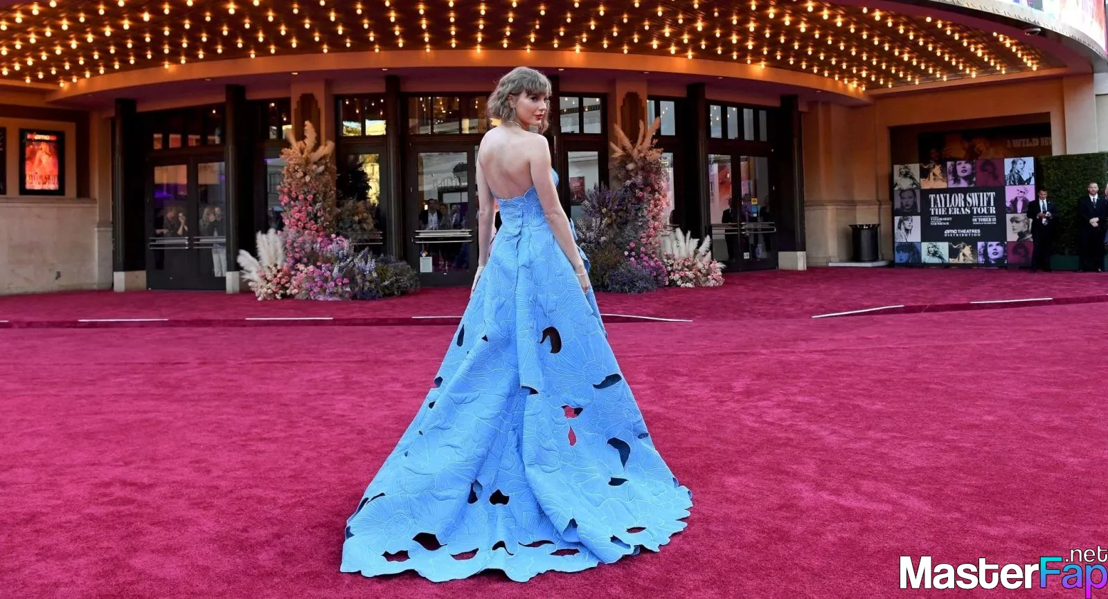 Prepare to be mesmerized by Taylor Swift's magnetic allure in her stunning blue dress for the 'The Eras Tour' premiere.