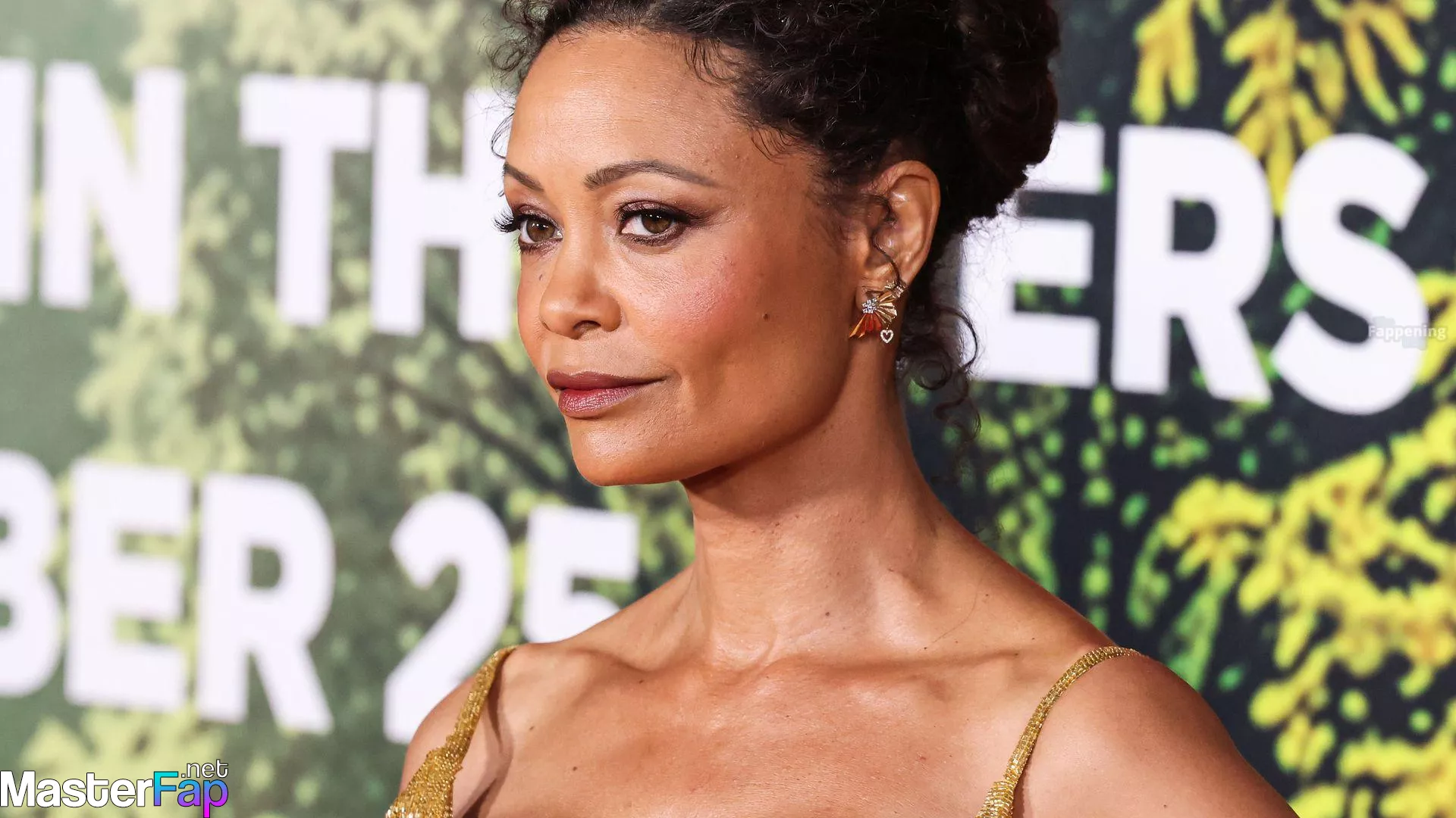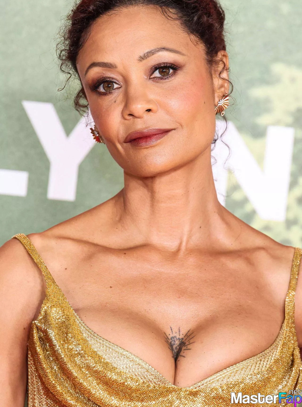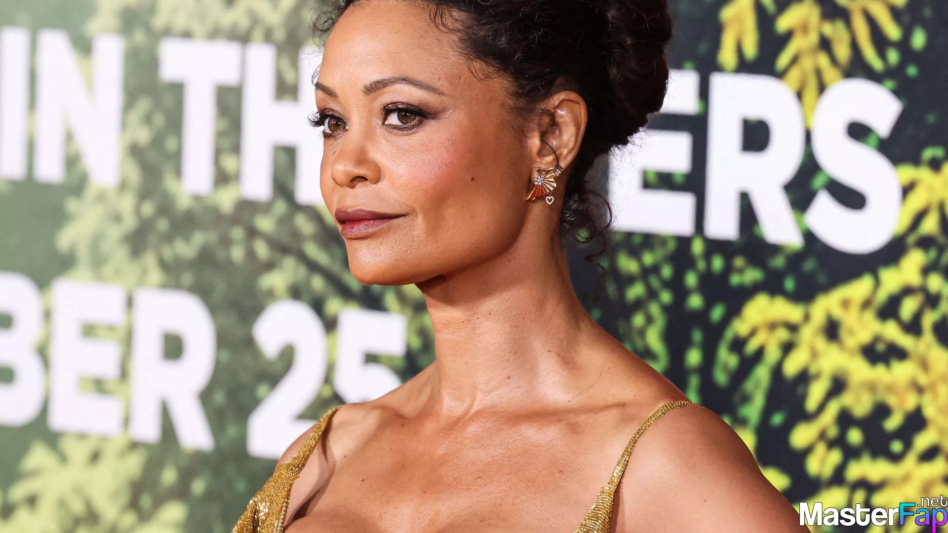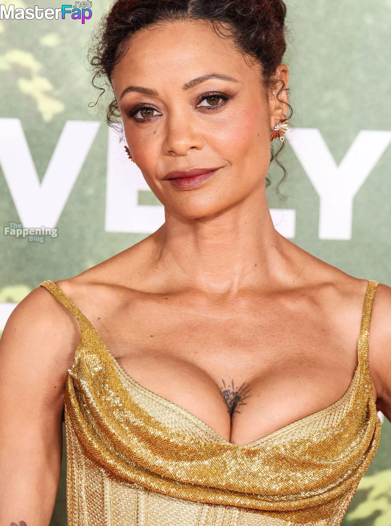 Thandie Newton (53) stuns in a golden dress at the “Anaconda” premiere at the United Theater on Broadway in Los Angeles. Check out her stunning red carpet photos below.
