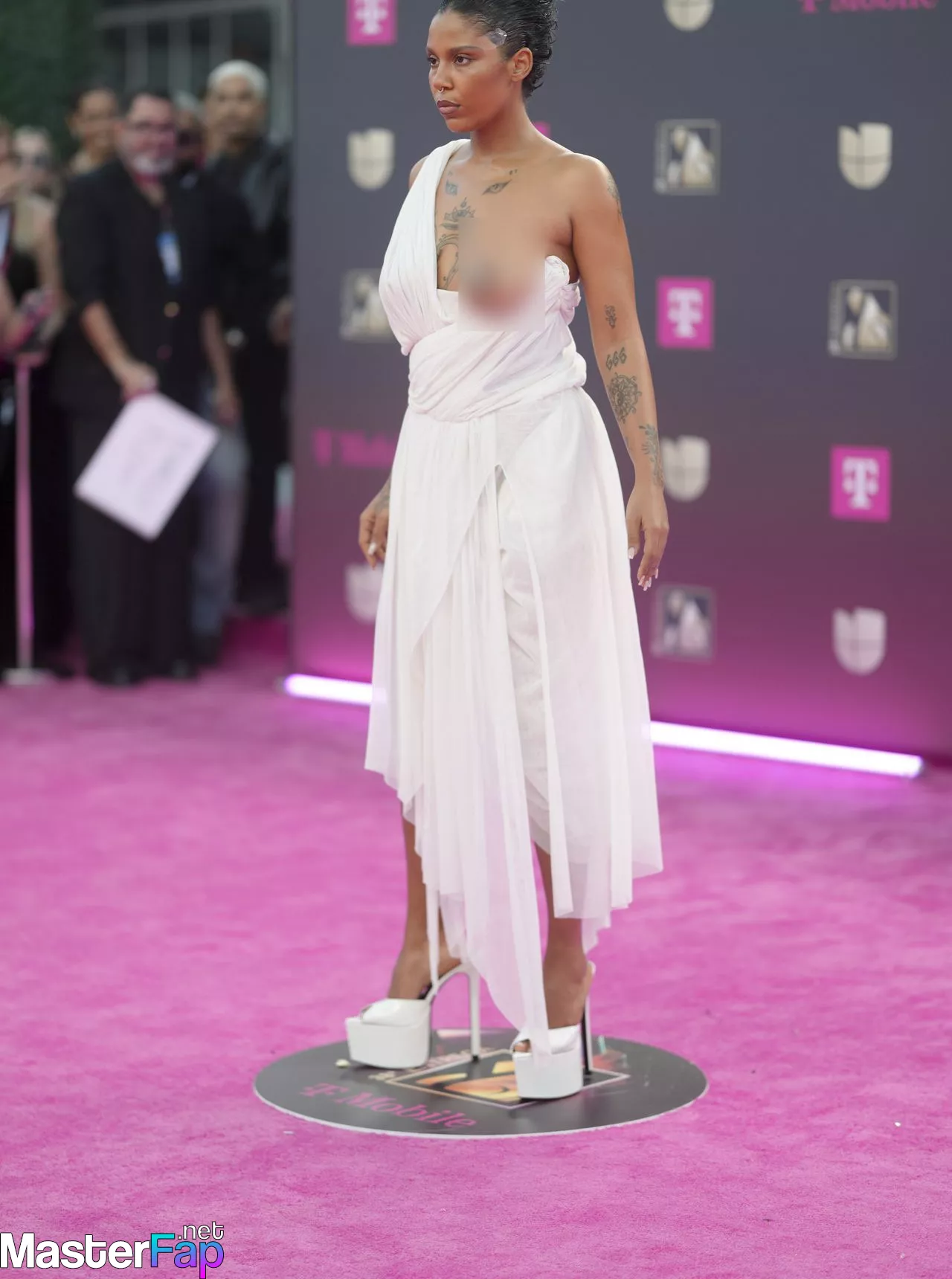Singer Tokischa made a striking appearance at Premio Lo Nuestro 2026 in Miami, Florida, wearin’ a revealing white dress that drew attention on the red carpet durin’ the annual Latin Music Awards ceremony.