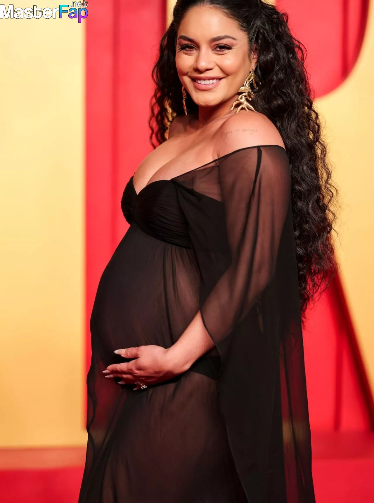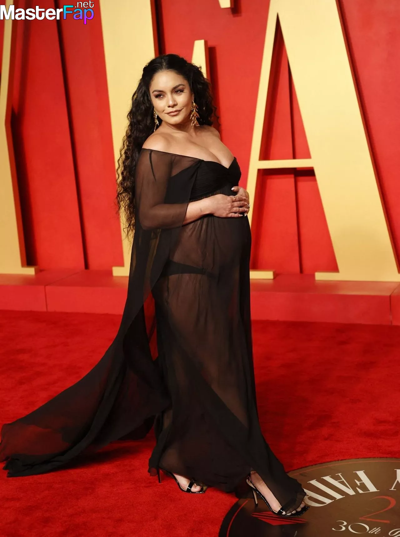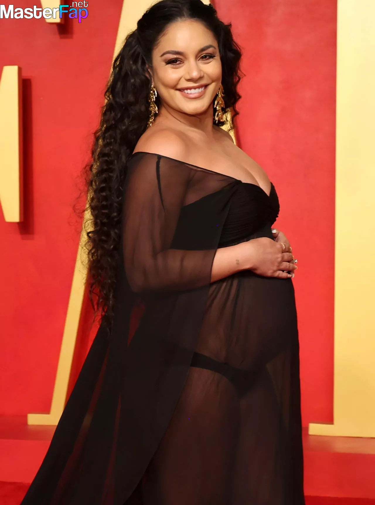 Looking radiant in a see-through dress, Vanessa Hudgens shows off her pregnancy glow, highlighting her cleavage and growing baby bump. The Fappening actress/singer rocks the event at the Wallis Annenberg Center for the Performing Arts in Beverly Hills, California, on March 10, 2024.