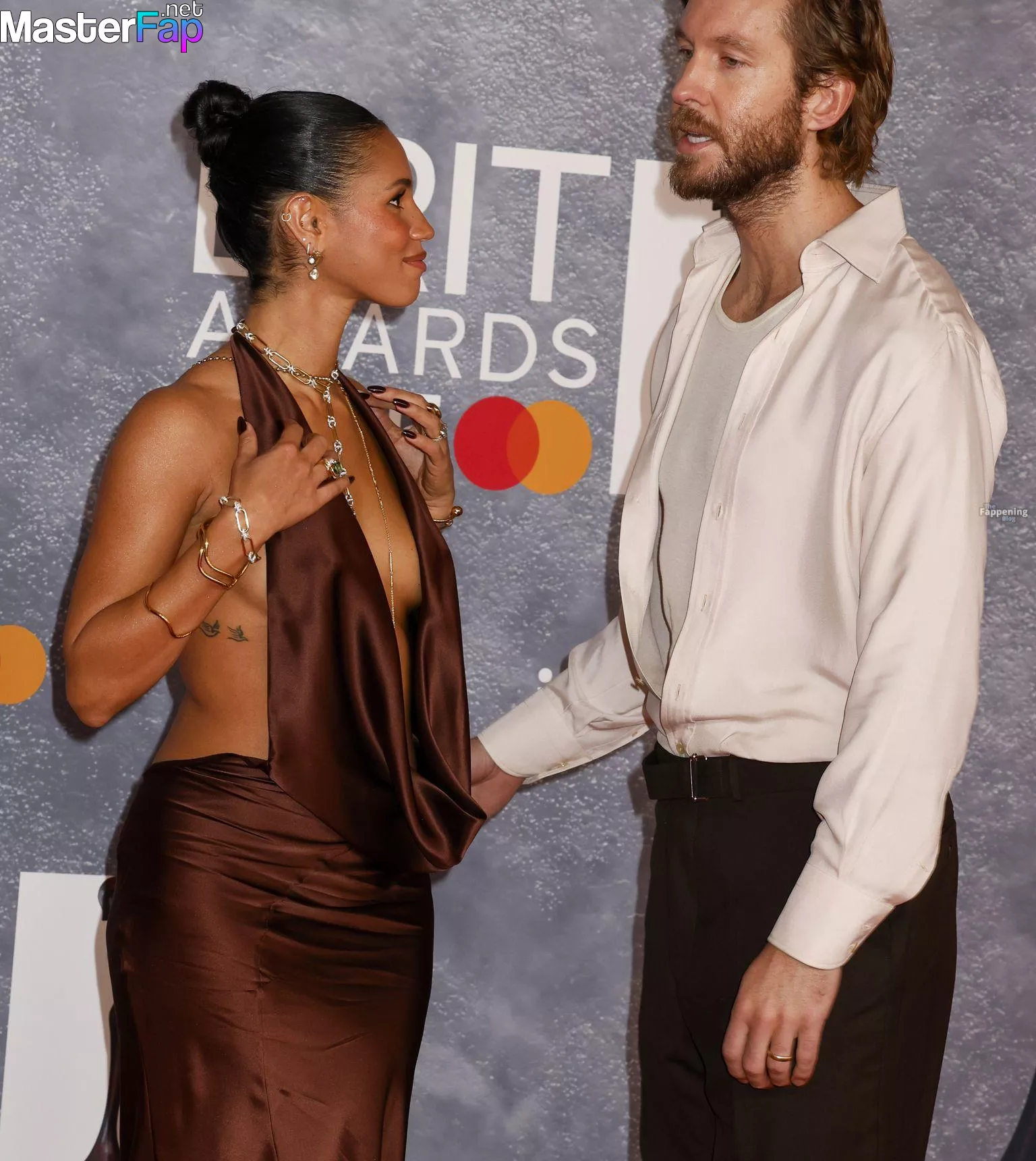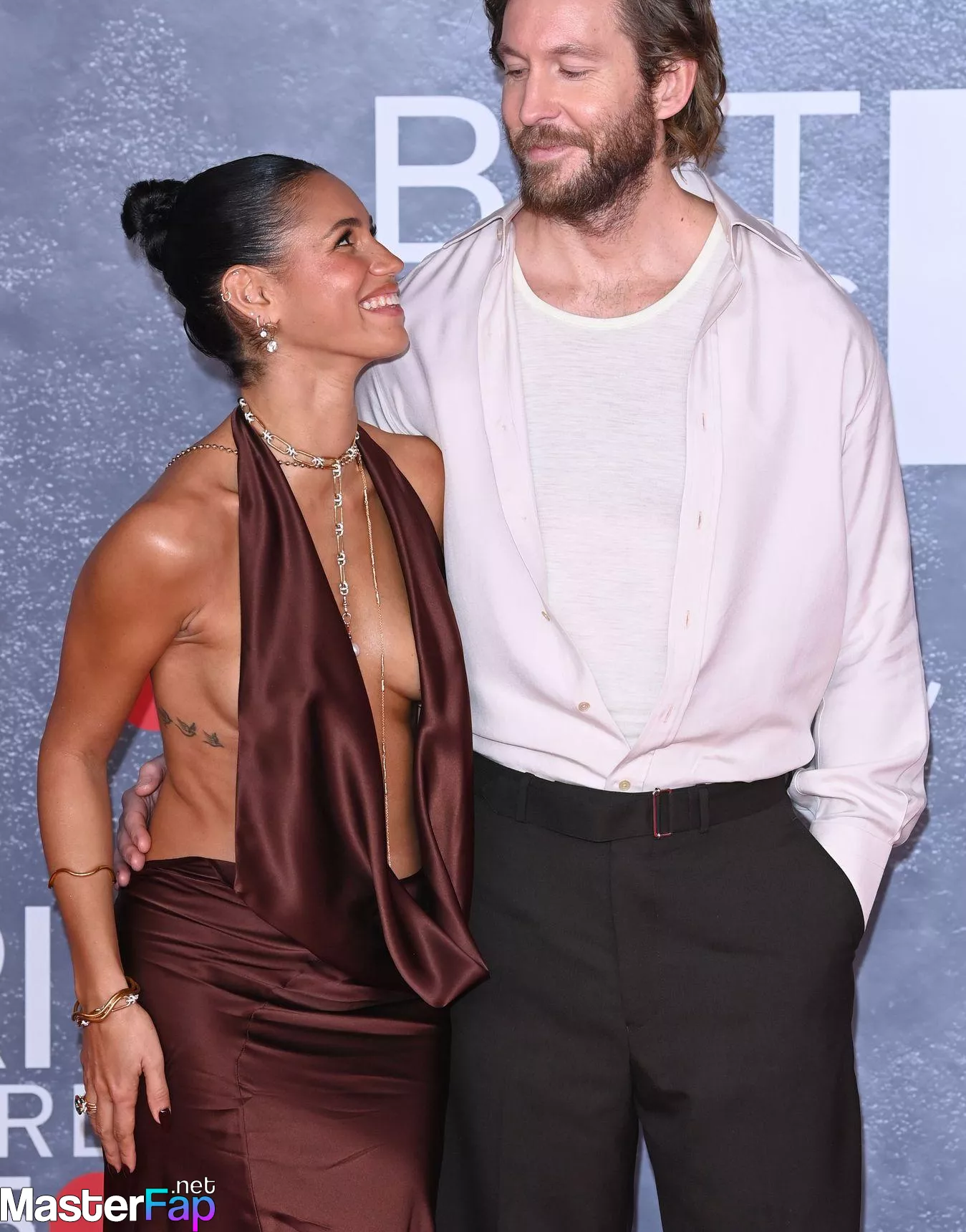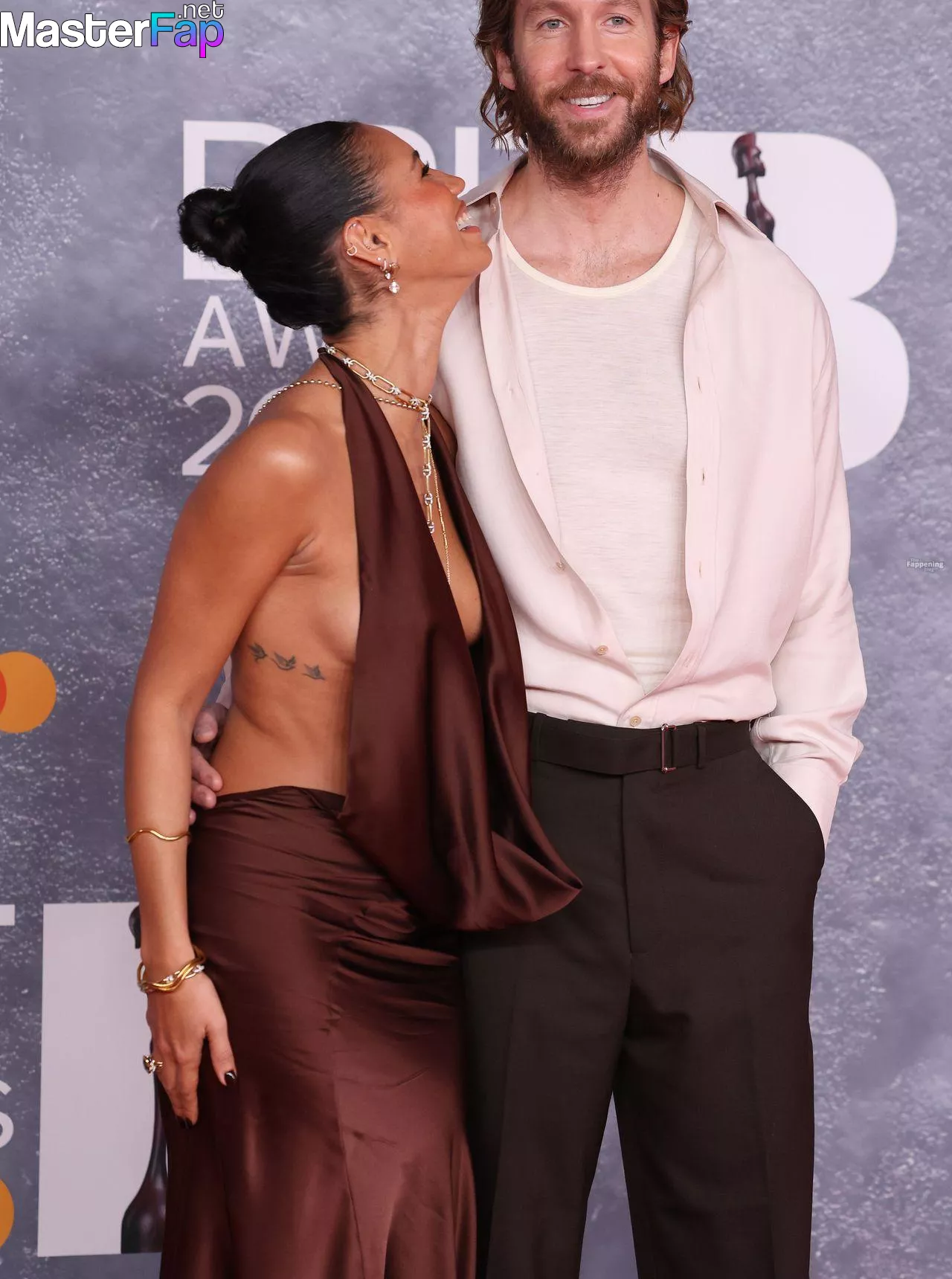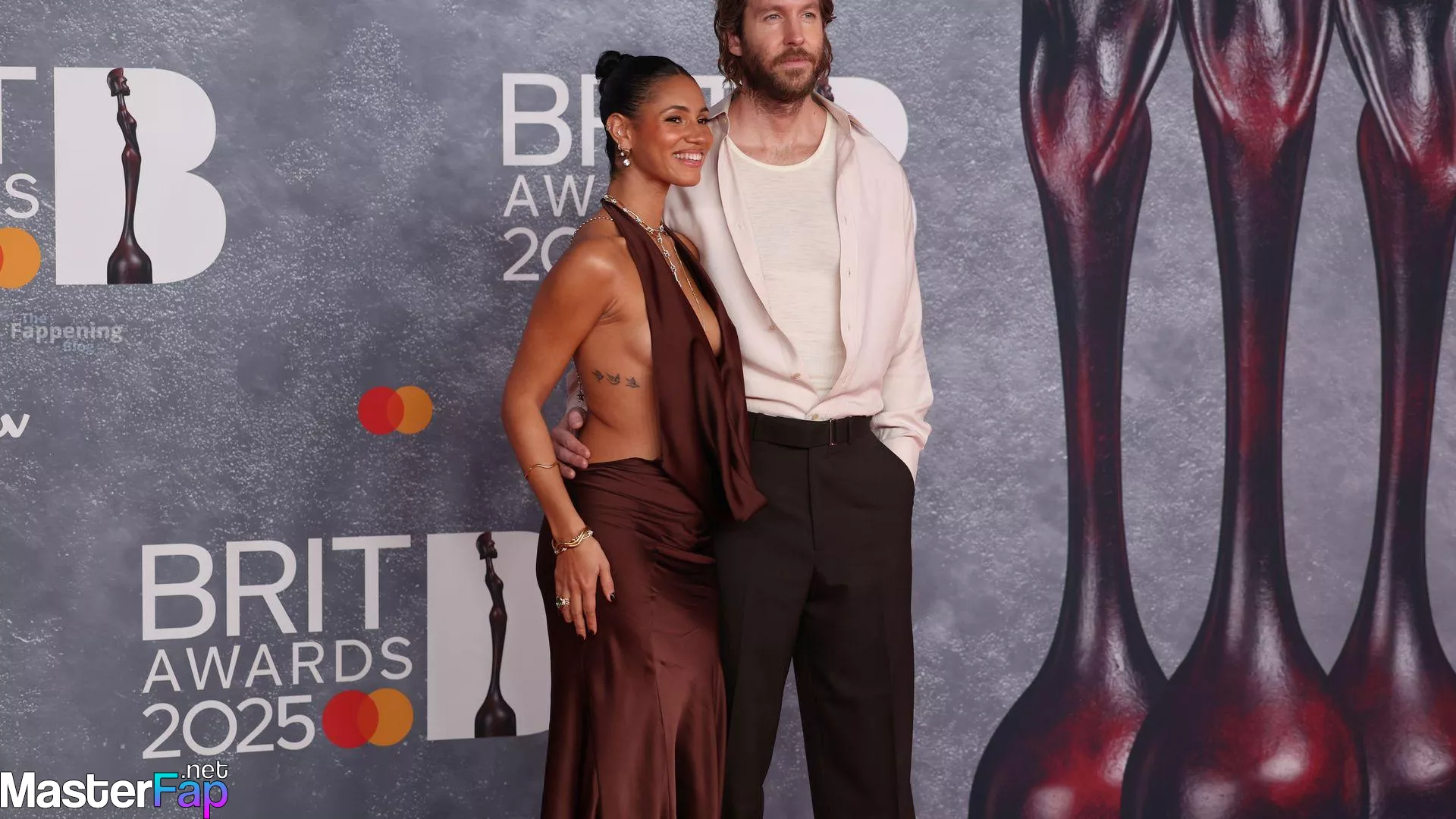 British television presenter Vick Hope looks hot at the 2025 Brit Awards, rocking a bold, plunging gown with no underwear.