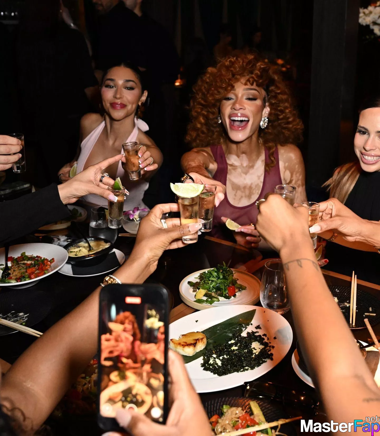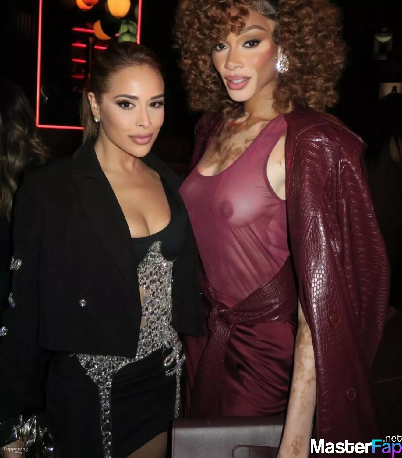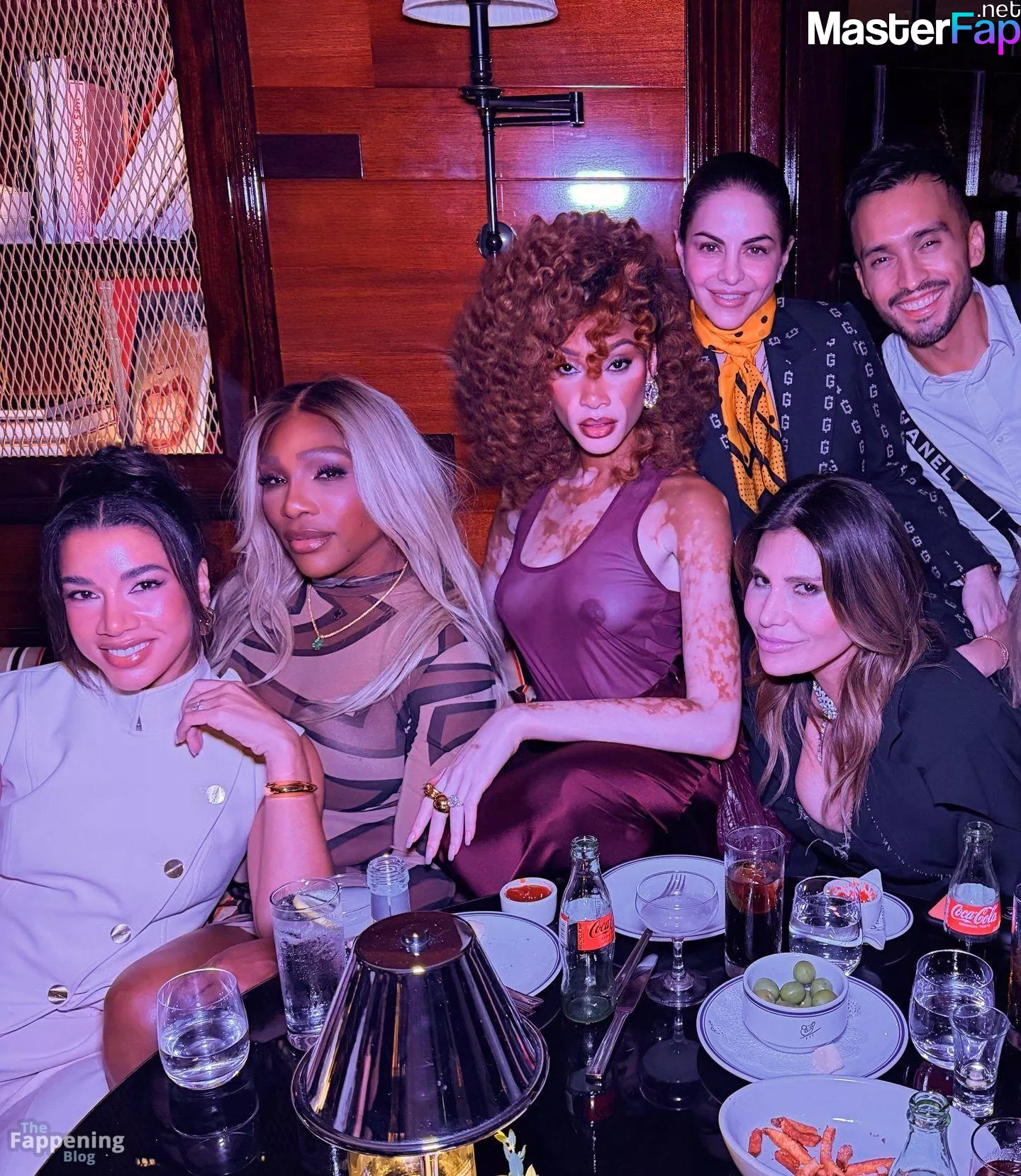 Model Winnie Harlow stuns without a bra, showing off her bare tits, while wearing a see-through top at the Miami CEO Club event.