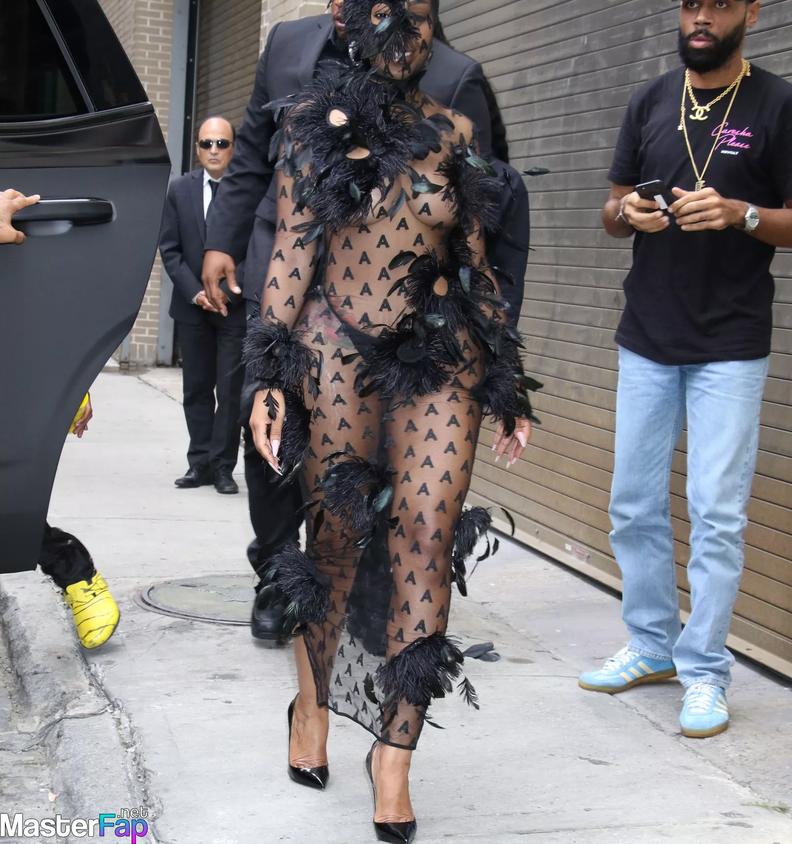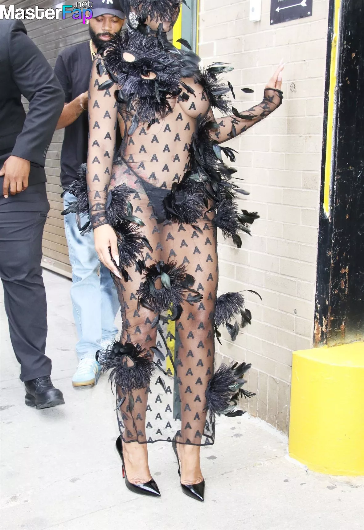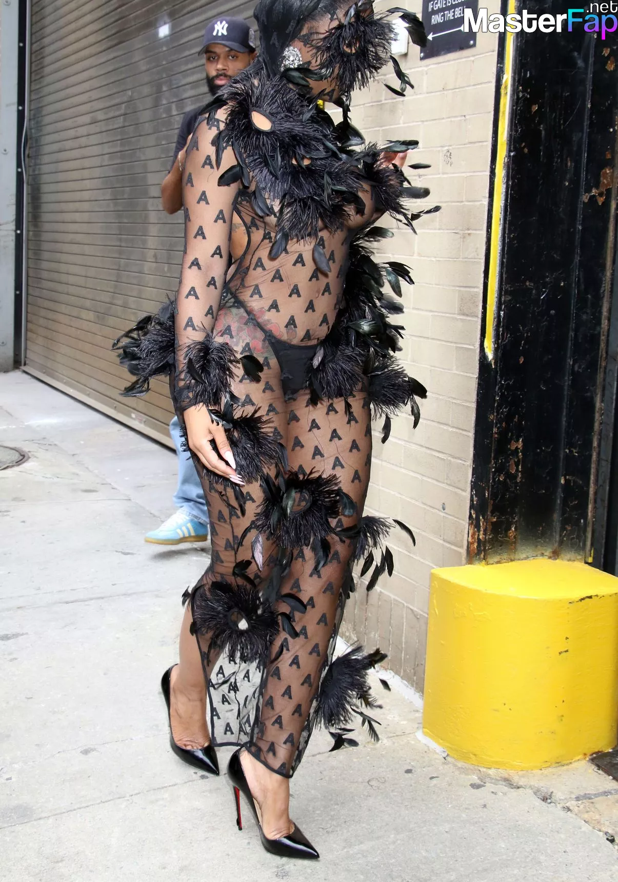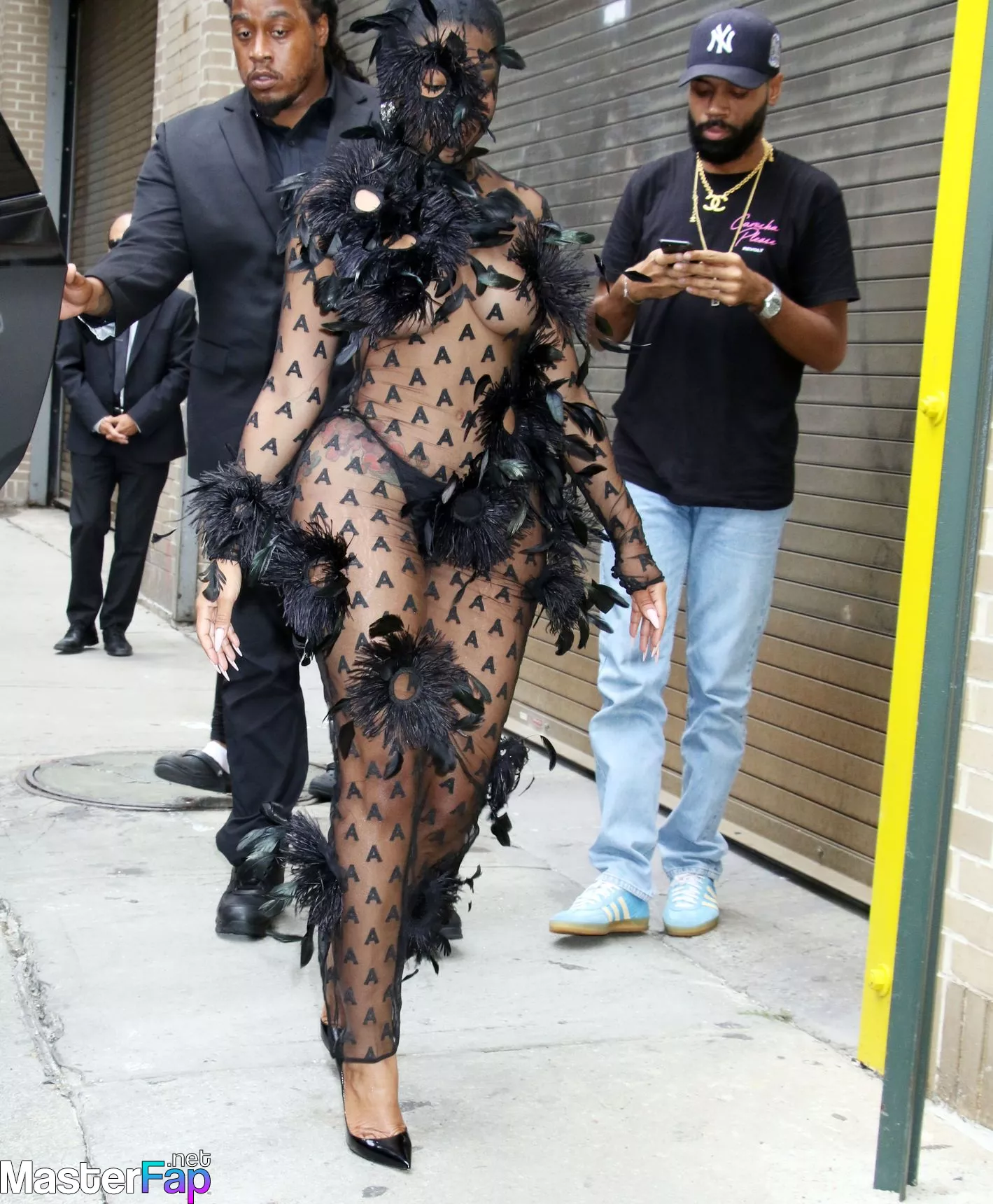 Rapper Yung Miami is getting spotted going braless at New York Fashion Week, hitting up events at Spring Studios.