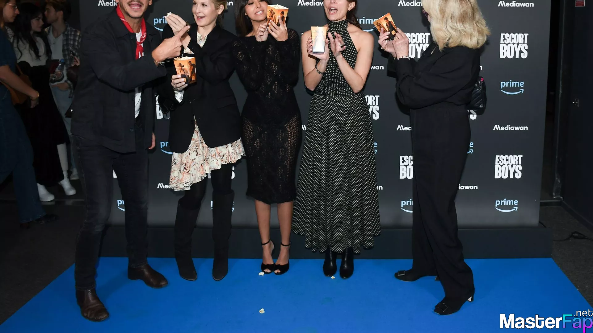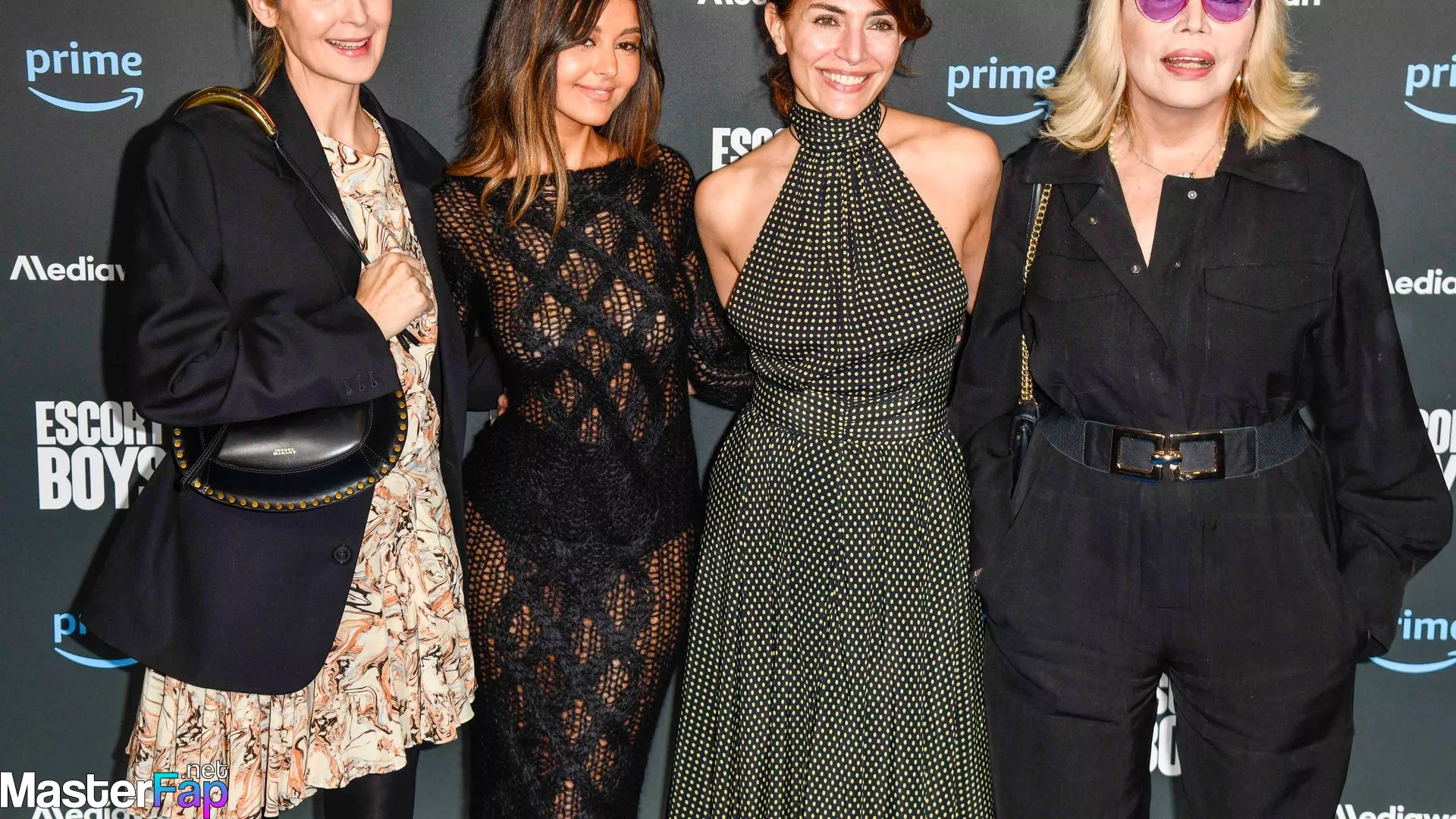 Watch Zahia Dehar steal the show at the premiere of "Escort Boys" by Prime Video at the UGC Cine Cite des Halles in Paris on December 18, 2023. She is wearing a dress that is see-through and she is the center of attention.